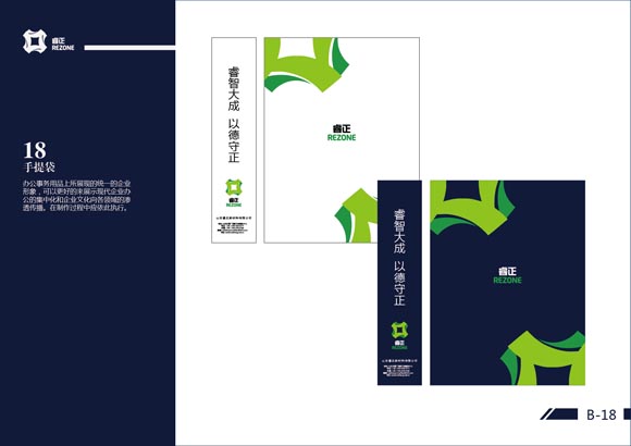 圖形用rezone首字母r變形而來,首尾相接,有循環(huán)延續(xù)之意。整個(gè)標(biāo)識弧中帶方,有方圓結(jié)臺之意,是為“睿”。中間的小方形又貼合 “正”字,結(jié)合“睿正”二字,為中正博睿之意。標(biāo)準(zhǔn)色采用綠色,符合企業(yè)新能源特性。兩種綠色搭配,突出標(biāo)識的層次和立體感。