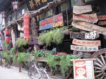 這家酒吧也對(duì)外供應(yīng)午餐,據(jù)說(shuō)大廚是平遙最著名的星級(jí)飯店的主廚,戴著雪白的像蛋糕一樣高高的帽子。一碗刀削面要十元,比青島的價(jià)格還要高出兩三元,如果加雞蛋還要另加五元。我們幾個(gè)都不喜歡吃雞蛋,當(dāng)即要了四碗不加雞蛋的。端上來(lái)后,湯醇面白,確實(shí)美味。這時(shí)對(duì)面兩位要了兩碗加雞蛋的,我們一看這雞蛋大吃一驚,竟然就是兩個(gè)剝了皮的茶葉蛋!五元買倆茶葉蛋?。】峙率侨珖?guó)最貴的茶葉蛋了。剛開(kāi)始我們還以為是煎雞蛋呢。吃到一半,感覺(jué)湯太少面太干,于是問(wèn)服務(wù)員要兩碗湯。“我們這里的湯是收費(fèi)的。”真驚了,連碗面條湯都要收費(fèi),不喝了!