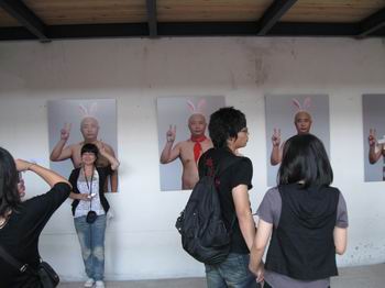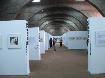 吃罷早飯,來(lái)到離西門最近的展區(qū),開(kāi)始此行最主要的目的――觀展。平遙國(guó)際攝影節(jié)是世界最大規(guī)模最高規(guī)格的攝影節(jié),來(lái)自世界各地的名家作品都將在這里參展,當(dāng)然,也有來(lái)自全國(guó)各地各門各派甚至個(gè)人參展。攝影節(jié)其間,整個(gè)平遙都是一個(gè)大展臺(tái),比較集中的幾個(gè)地方有柴油機(jī)廠、土倉(cāng)(土產(chǎn)倉(cāng)庫(kù))、二針、城隍廟、縣衙、棉織廠和文廟。其中土倉(cāng)的作品規(guī)格較高,世界級(jí)的大師主要集中在那里。縣衙的展品主要體現(xiàn)“奧運(yùn)?大愛(ài)”這個(gè)主題,主要作品為奧運(yùn)、圖片和地震相關(guān)圖片,還有土耳其、印度等風(fēng)光照。柴油機(jī)廠主要是國(guó)內(nèi)比較知名攝影家作品的集中地。二針是學(xué)生作品。棉織廠主要是來(lái)自五湖四海的較有個(gè)性的新銳攝影師的個(gè)人展覽,作品比較出奇,以玩創(chuàng)意為主。因?yàn)橛袀€(gè)朋友在棉織廠辦個(gè)展,所以我們先從這里看起,因此整個(gè)國(guó)際攝影節(jié)給我留下的第一印象是:水平?jīng)]有我想象般高。滿倉(cāng)滿谷的照片看得我神經(jīng)麻木,身邊到處是掛著長(zhǎng)槍短炮的人們,到處是“咔嚓咔嚓”的快門聲,幸好科技進(jìn)步到數(shù)碼時(shí)代,如果是膠片拍攝,估計(jì)這些人們就不會(huì)這么大方了。于是準(zhǔn)備去城墻上轉(zhuǎn)轉(zhuǎn),感受一下居高臨下憑風(fēng)而立俯視全城的愜意。