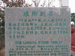 現(xiàn)存的秦代石刻,《嶧山刻石》、《泰山刻石》都是看了的,一直以為《瑯琊刻石》是在平度境內(nèi),現(xiàn)在想來(lái)是和平度天柱山《鄭文公碑》搞混了。原來(lái)瑯琊臺(tái)是兩千多年前人工筑就的,秦始皇從內(nèi)地遷來(lái)3萬(wàn)戶百姓,修筑瑯琊臺(tái),并3次東巡登臨瑯琊,這里還是徐福率數(shù)千童男童女東渡日本的啟航地。再往前,越王勾踐居然想徒都瑯琊,還在此會(huì)盟諸候,成就春秋霸業(yè)。酈道元《水經(jīng)注》云“孤立特顯,出于眾山上,下周二十余里,傍濱巨海”,瑯琊臺(tái)“臺(tái)基三層,層高三丈,上級(jí)平敞,方二百余步,高五里”。且看這臺(tái)與齊地之古臺(tái)有何相異獨(dú)特之處,足以令始皇三次登臨,修筑宮殿,居住長(zhǎng)達(dá)三月?
