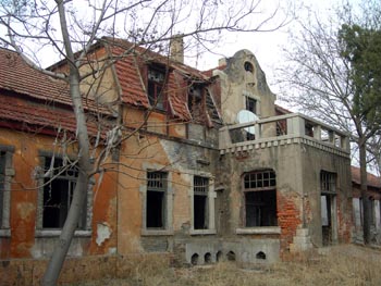 看了103棟德日建筑群中的其中一棟。房頂已經(jīng)破敗,周圍荒草萋萋,進(jìn)得里面,布局是極好的,看得出以前的精致。木地板也還結(jié)實,有一個旋轉(zhuǎn)的樓梯通往2樓,一看就是德國建筑。外面的窗戶極為別致,旁邊國人自行接續(xù)上一段平房,在里面當(dāng)作社區(qū)活動游藝室,有點不太搭調(diào)。有老人在耳邊叨叨說著舊日的歷史,他們似乎對100年前侵占土地的德國人并無惡感,畢竟年代久遠(yuǎn),而且德國建筑在相當(dāng)長的時間里發(fā)揮了重大作用,100年后的今天,還寫來關(guān)于房屋建筑壽命到期如何維修的函,令國人汗顏不已。